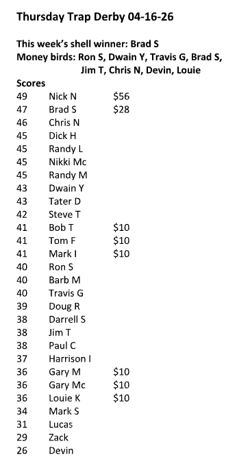 Money birds: Tom F, Stan S, Gary M, Randy L,